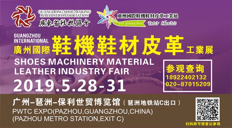 题记:由广东鞋机协会与广州广旅展览策划有限公司主办、东莞鞋机商会大力支持的“2019广州国际鞋机鞋材皮革工业展览会”将于2019年5月28-31日在